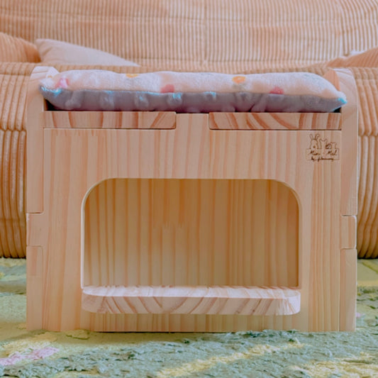 Mini-mal Wooden Hideout with Cushion (Medium) -Chin & Cavy Size-